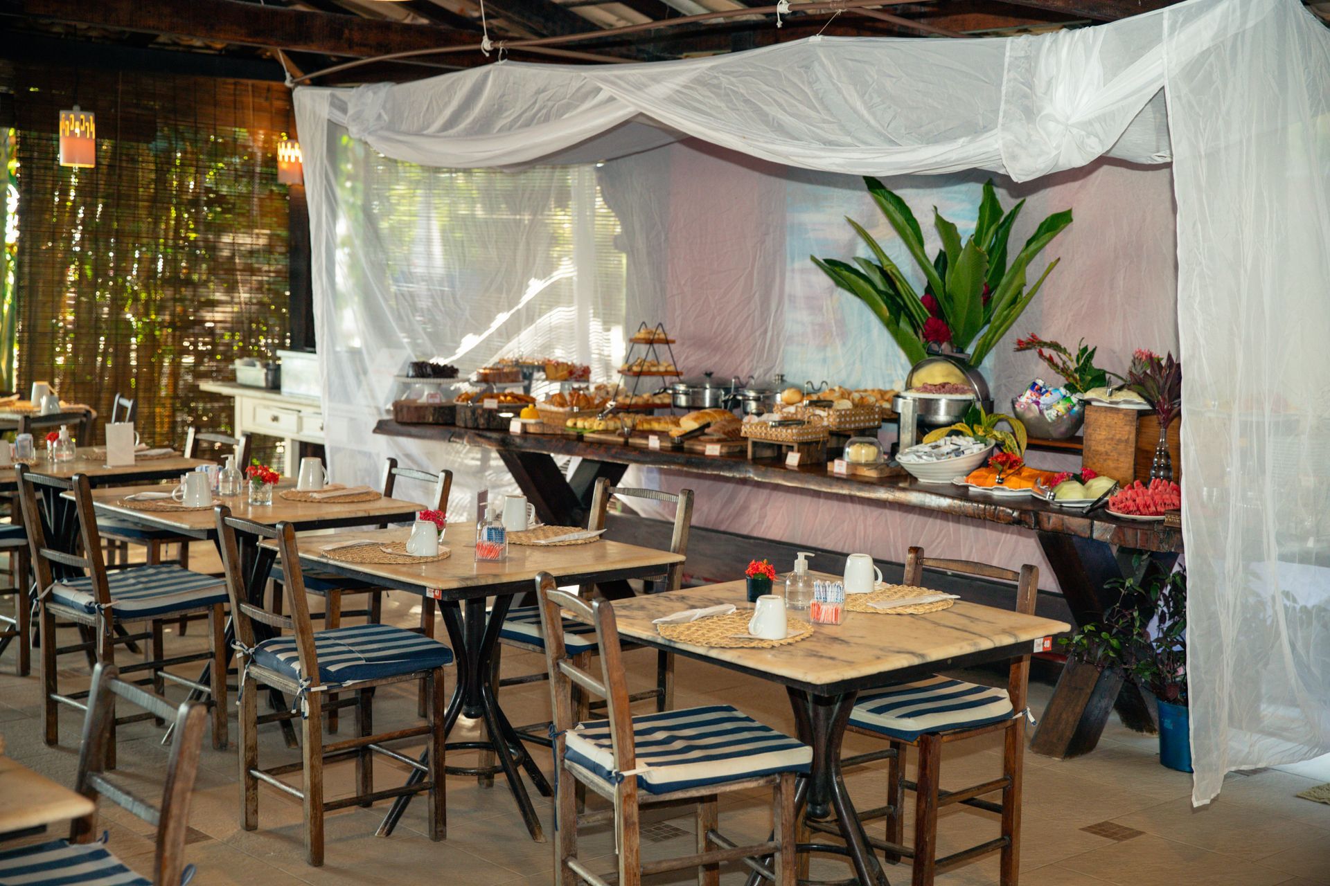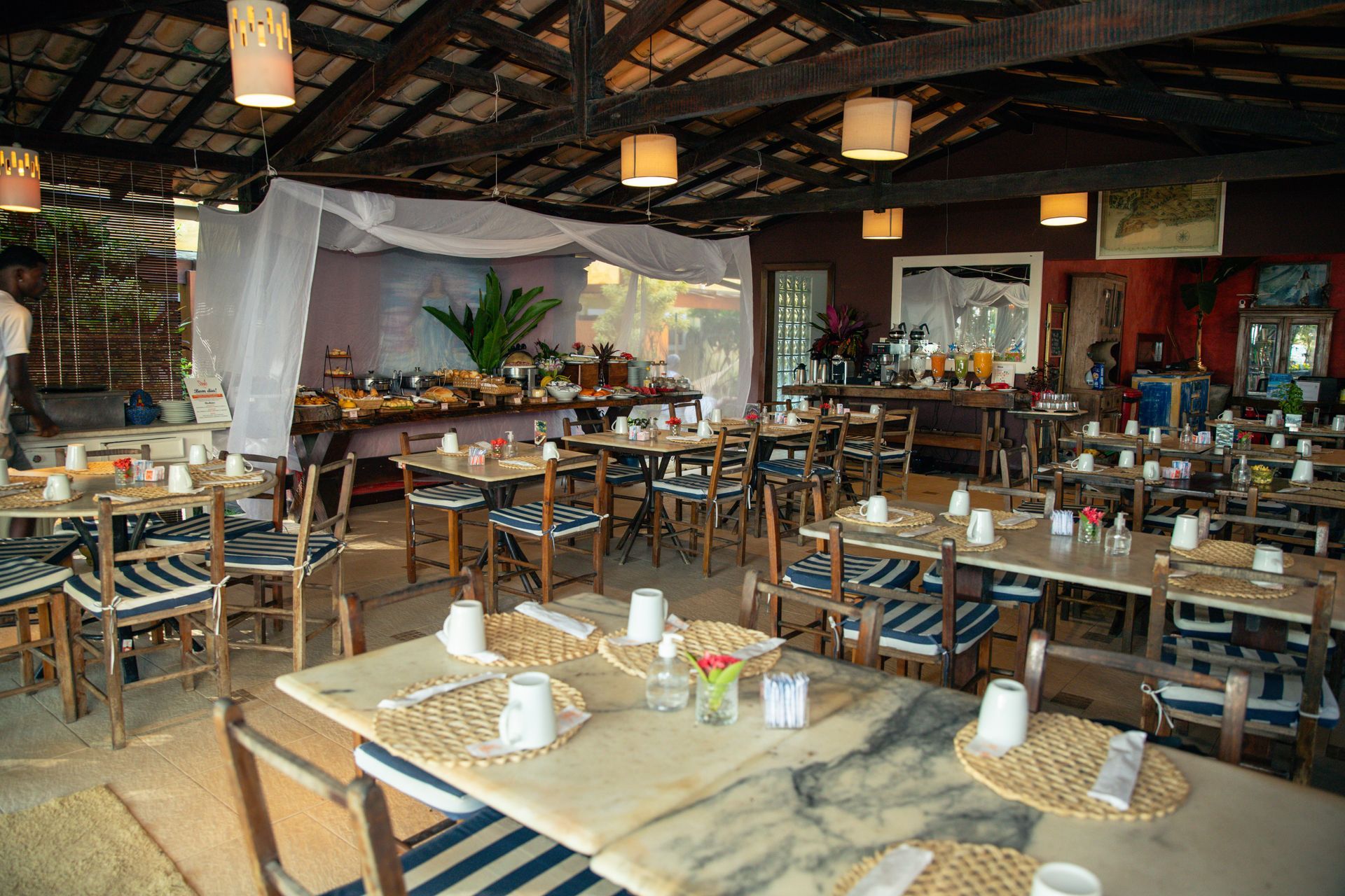Sua arquitetura colonial, rústica e confortável cercada por jardins e muito verde privilegia o contato com a natureza. Em uma área de 3.500 m², estão distribuídos 24 apartamentos em cinco categorias: Frente mar superior, Frente Piscina Térreo, Vista Jardim Superior, Standard e Mezanino.