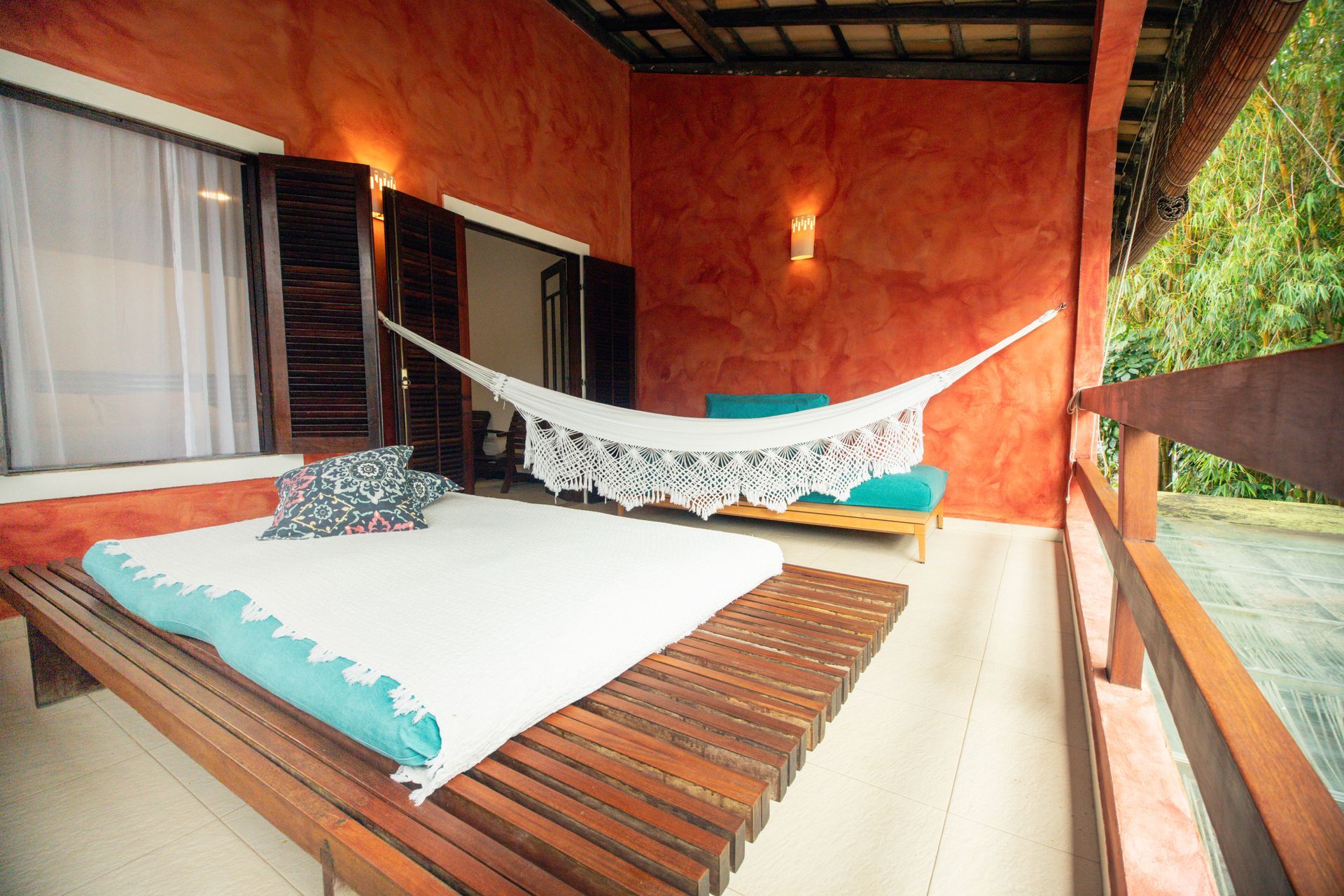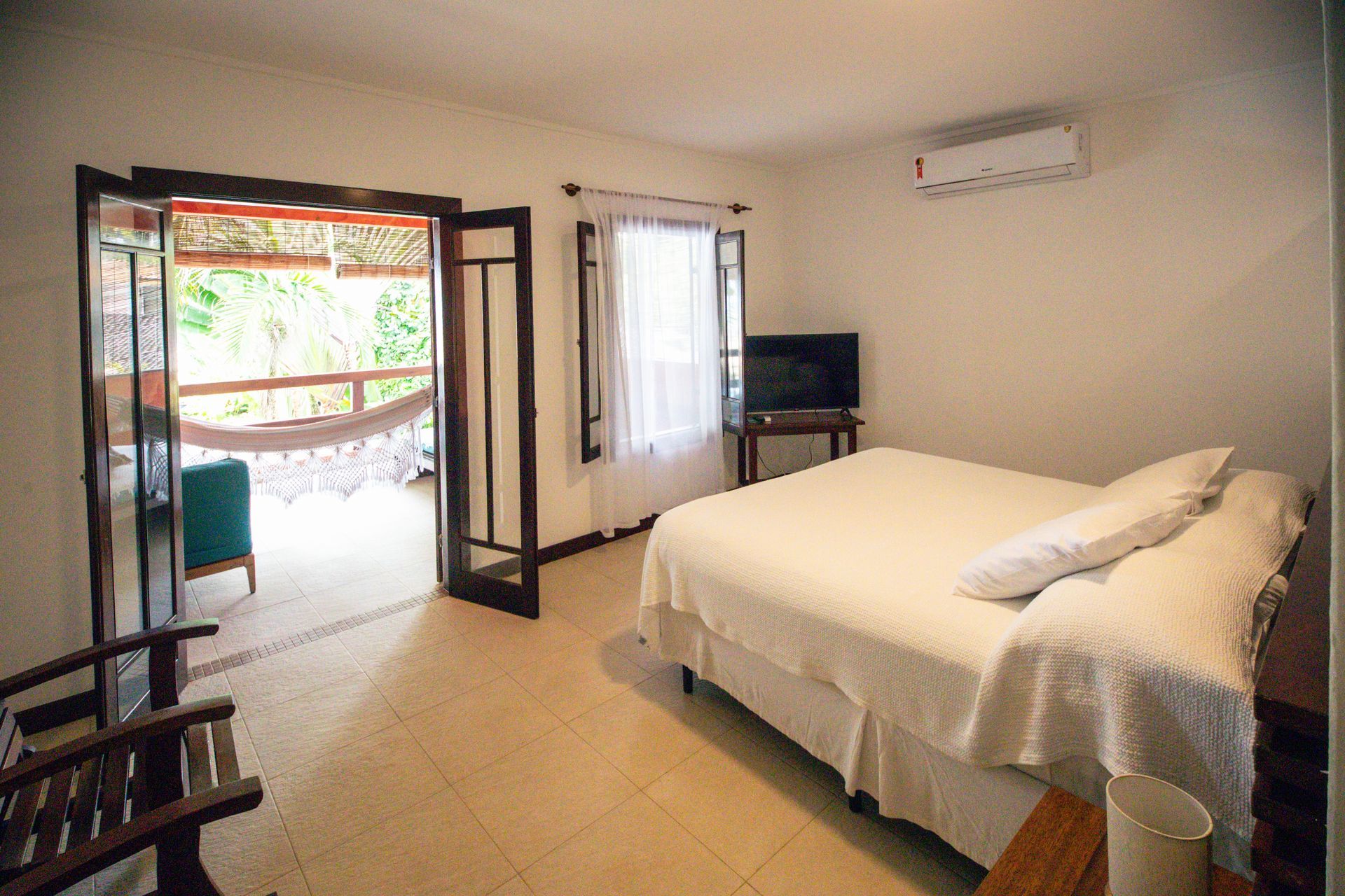 Apartamento com vista para o jardim, varanda com rede, ar condicionado split , Smart TV de 42”, cafeteira Nespresso cortesia no apartamento, frigobar, cofre, secador de cabelo, Wi-fi.